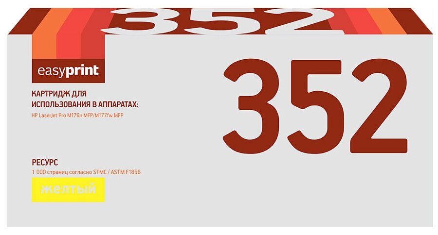 Ниже Вы можете прочитать отзывы на Лазерный картридж EasyPrint LH-352 (CF352A/130A/130 A/352A) для принтеров HP, желтый, ознакомится с подробными характеристиками, посмотреть интересные обзоры и фотографии на Лазерный картридж EasyPrint LH-352 (CF352A/130A/130 A/352A) для принтеров HP, желтый.