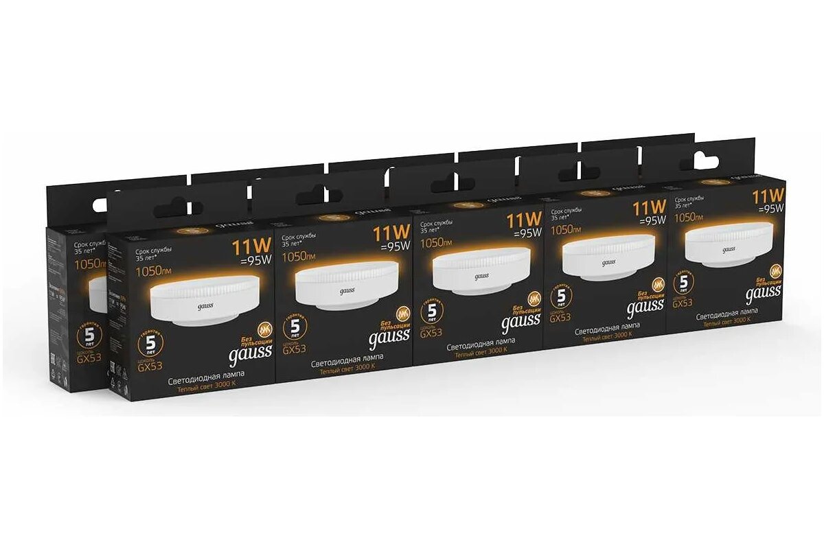 Светодиодная лампа Gauss GX53 11W 1050lm 3000K LED 1/10/100