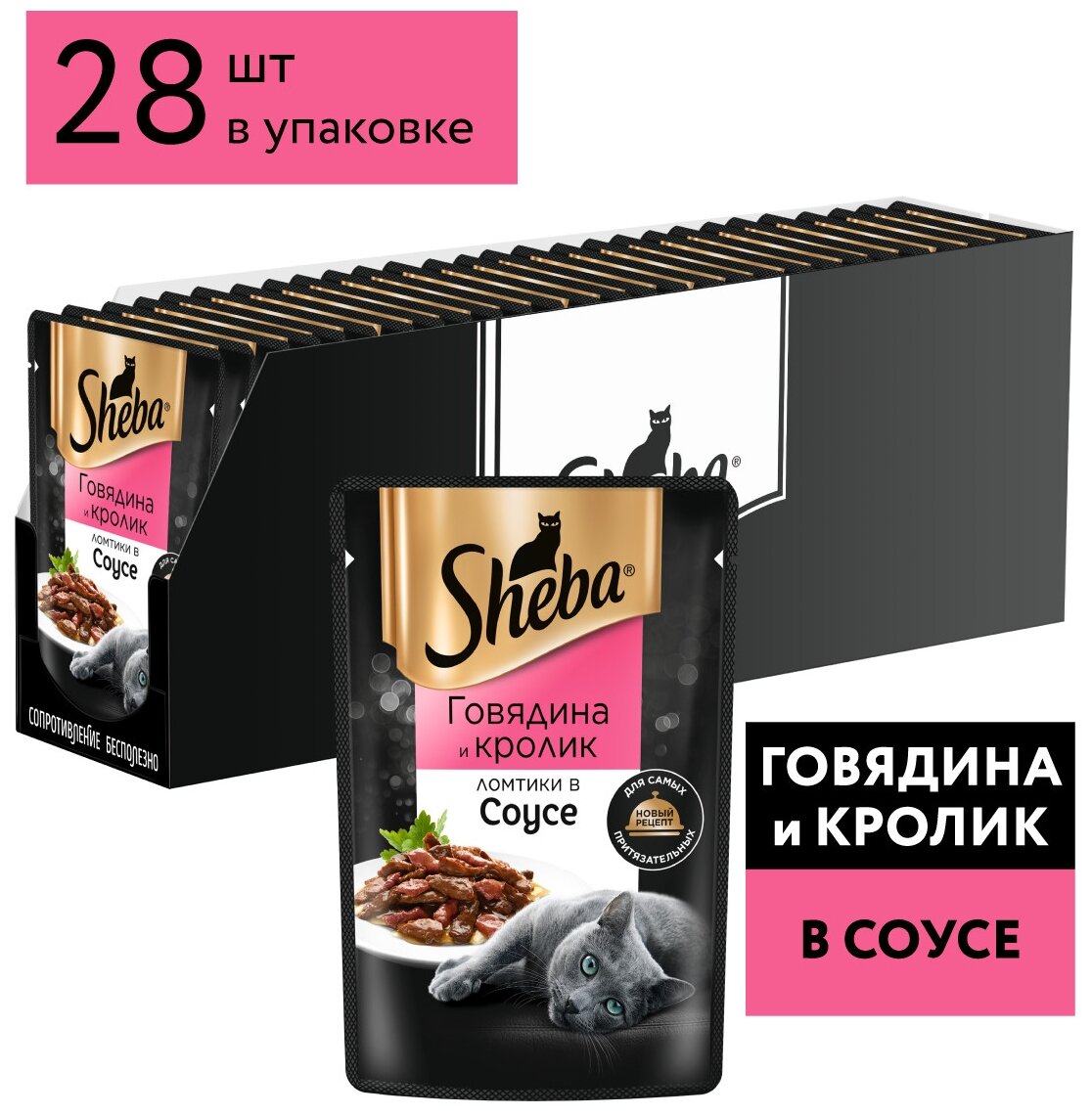 Купить Sheba Ломтики в соусе пауч для кошек Говядина и кролик, 75 г. упаковка 28 шт