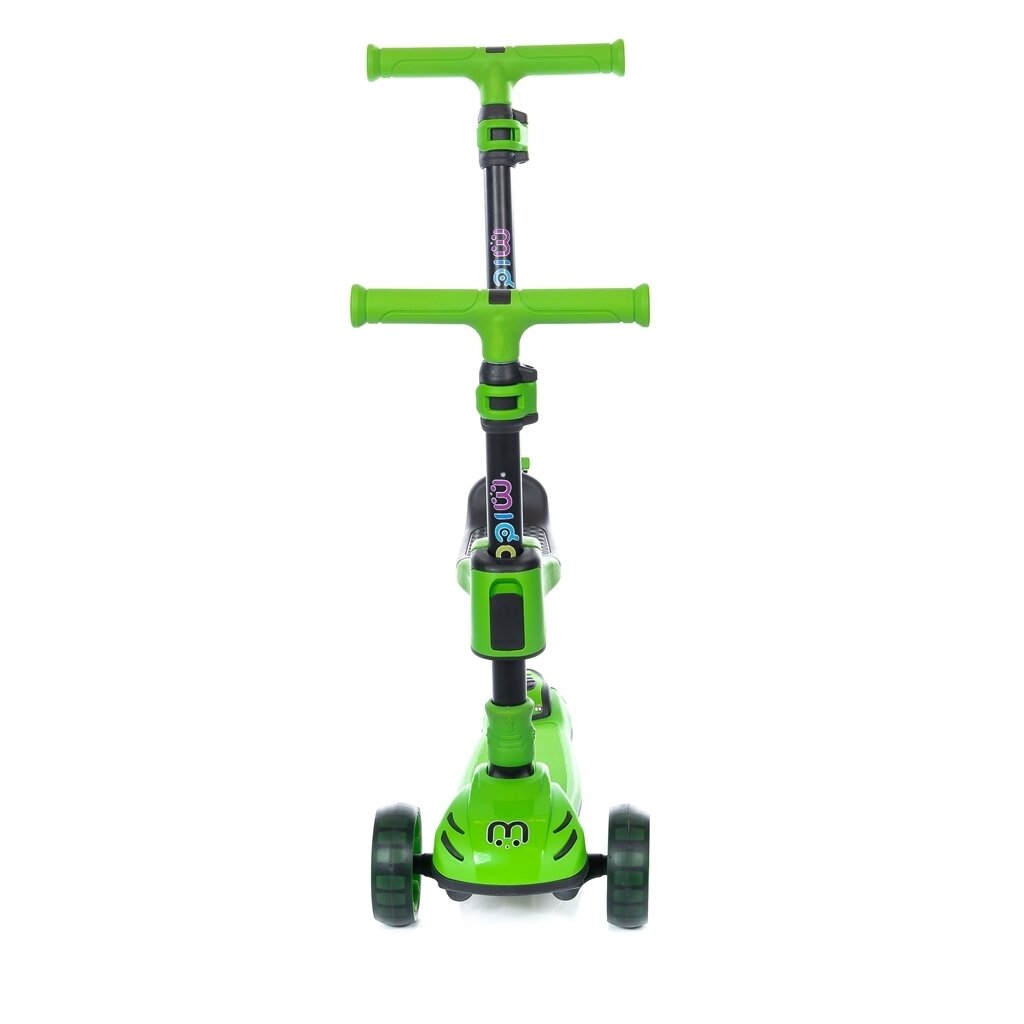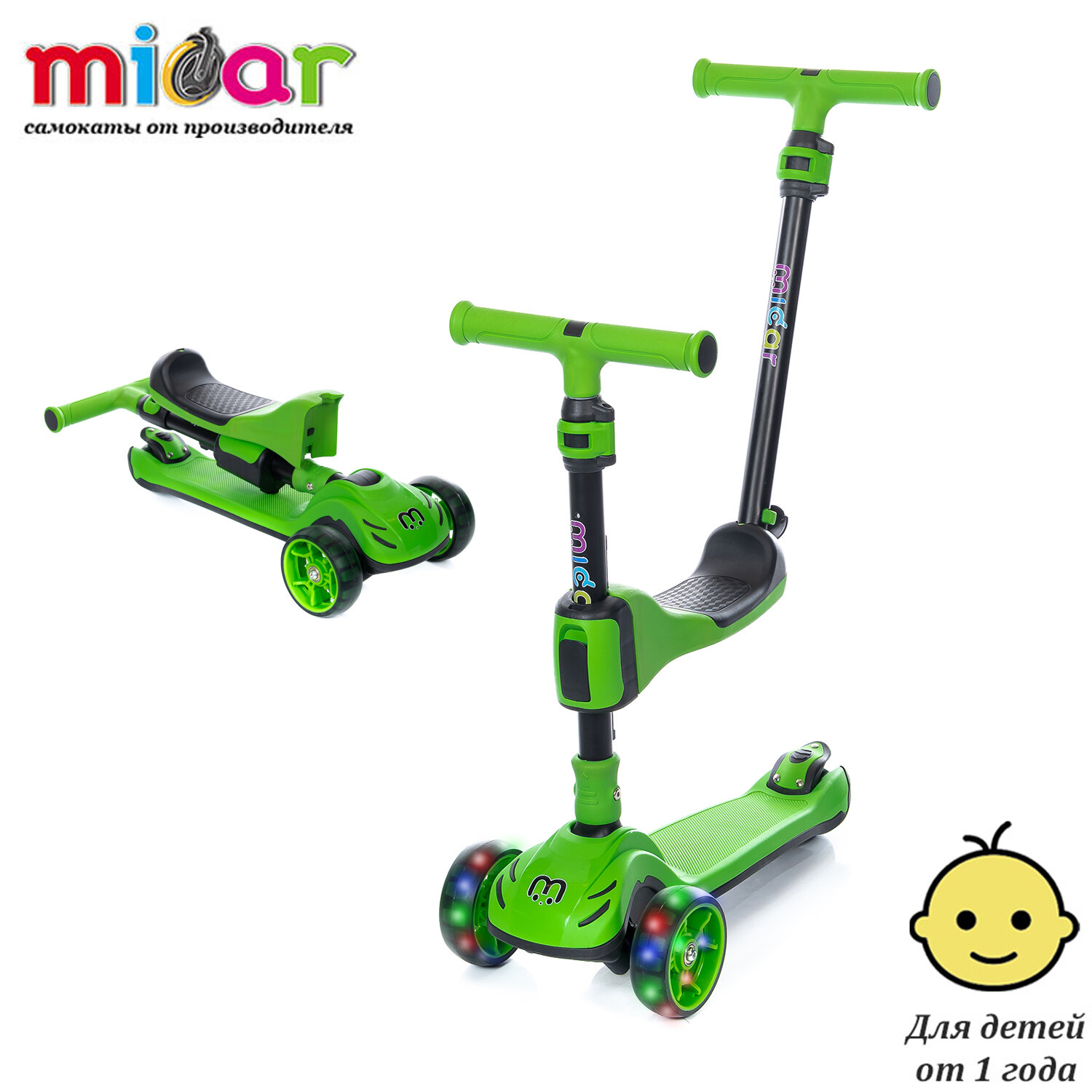 MICAR Самокат-беговел 3 в 1 Scooter Micar Transformer складной со светящимися колесами, сиденьем и родительской ручкой зеленый