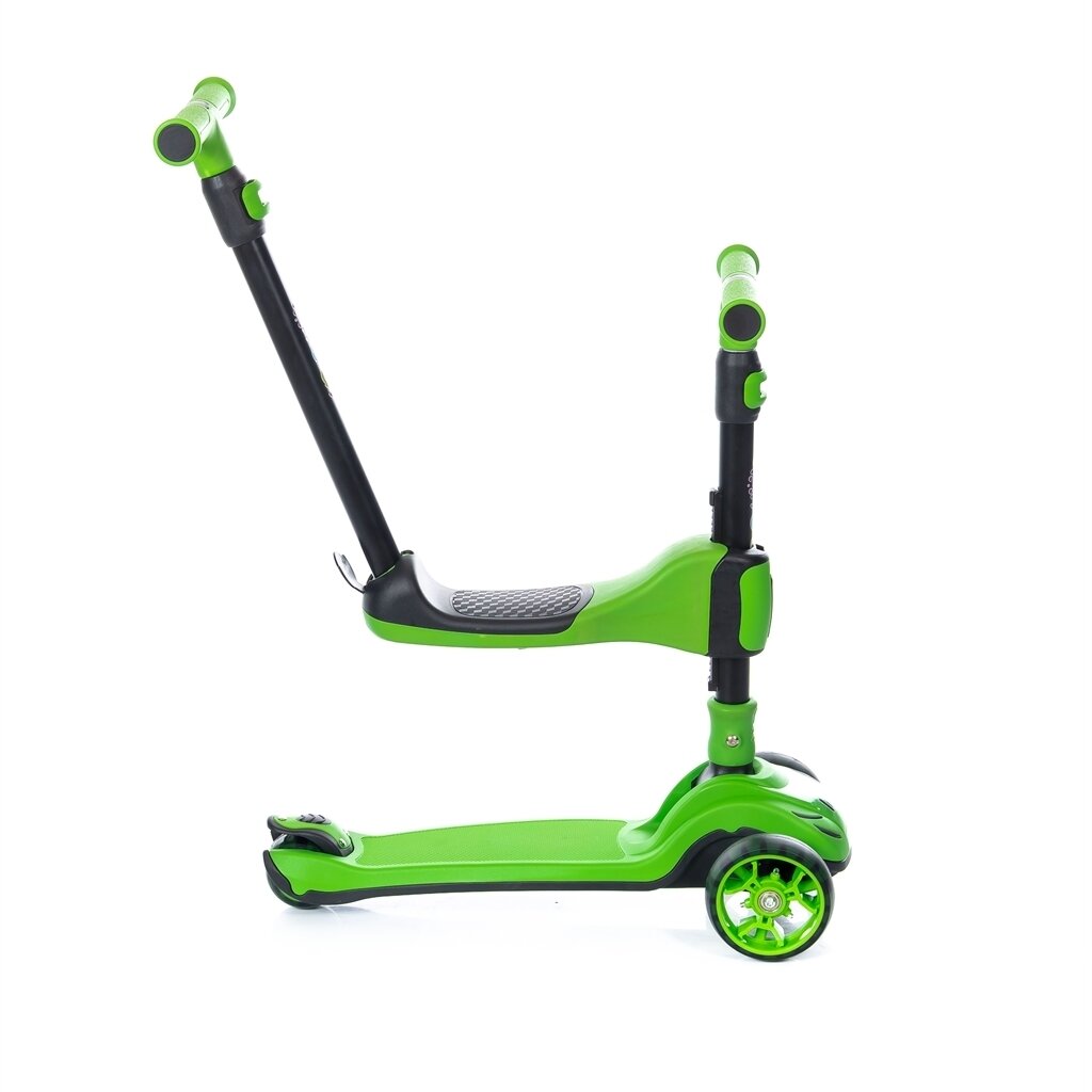 Самокат-беговел 3 в 1 Scooter Micar Transformer складной со светящимися колесами, сиденьем и родительской ручкой зеленый