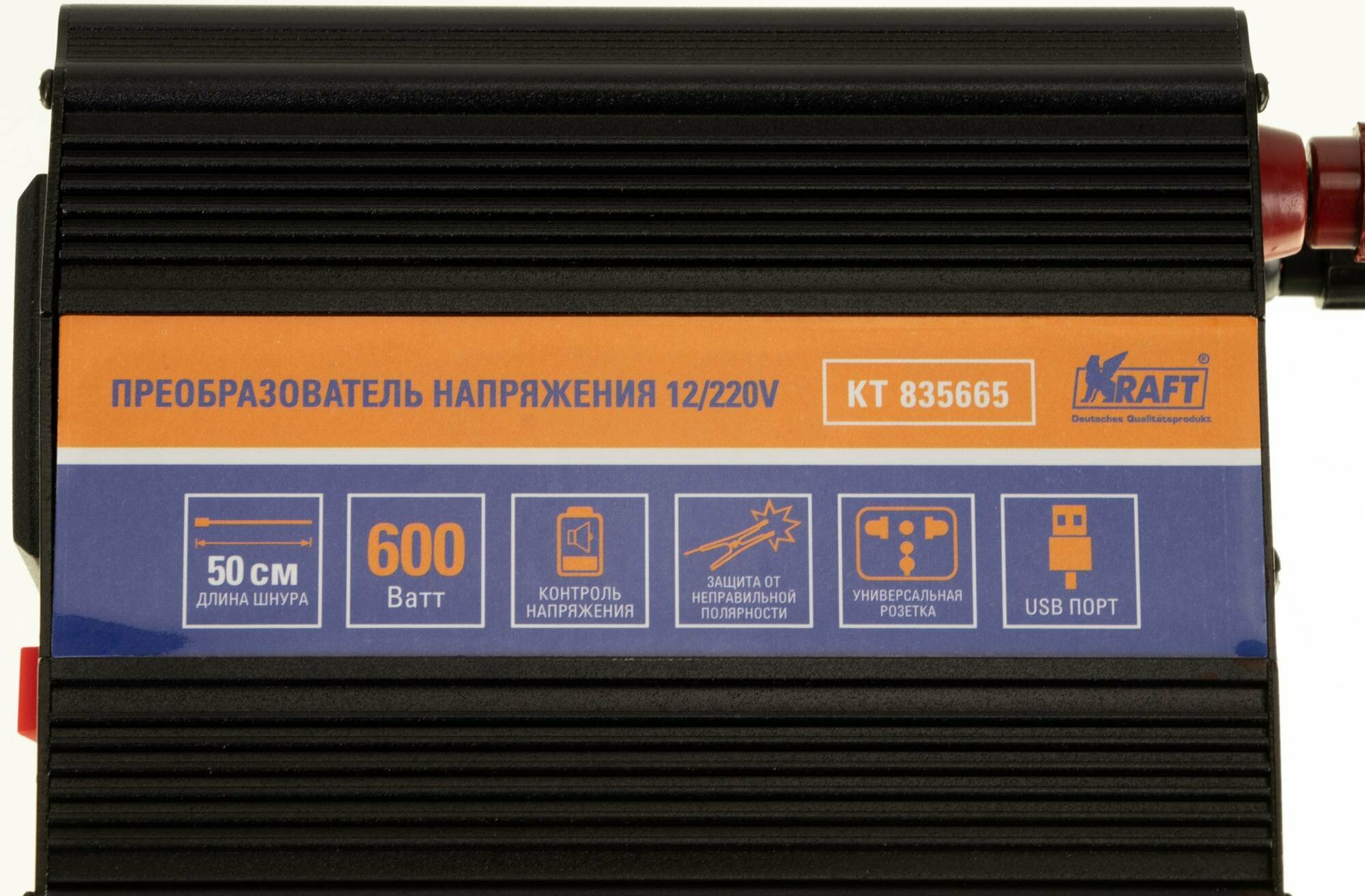 Инвертор Автомобильный 12/220V 600W Kraft Kt835665 Kraft арт. KT835665