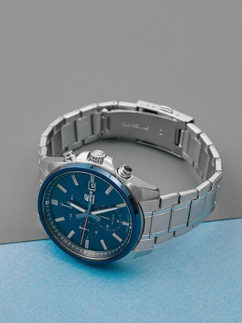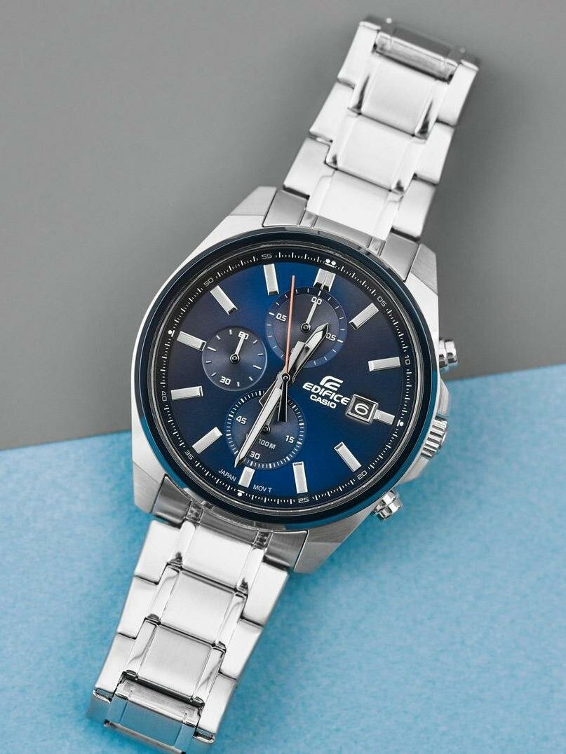 Японские кварцевые часы Casio EFV-610DB-2A на стальном браслете, с водозащитой 10 бар и международной гарантией от производителя