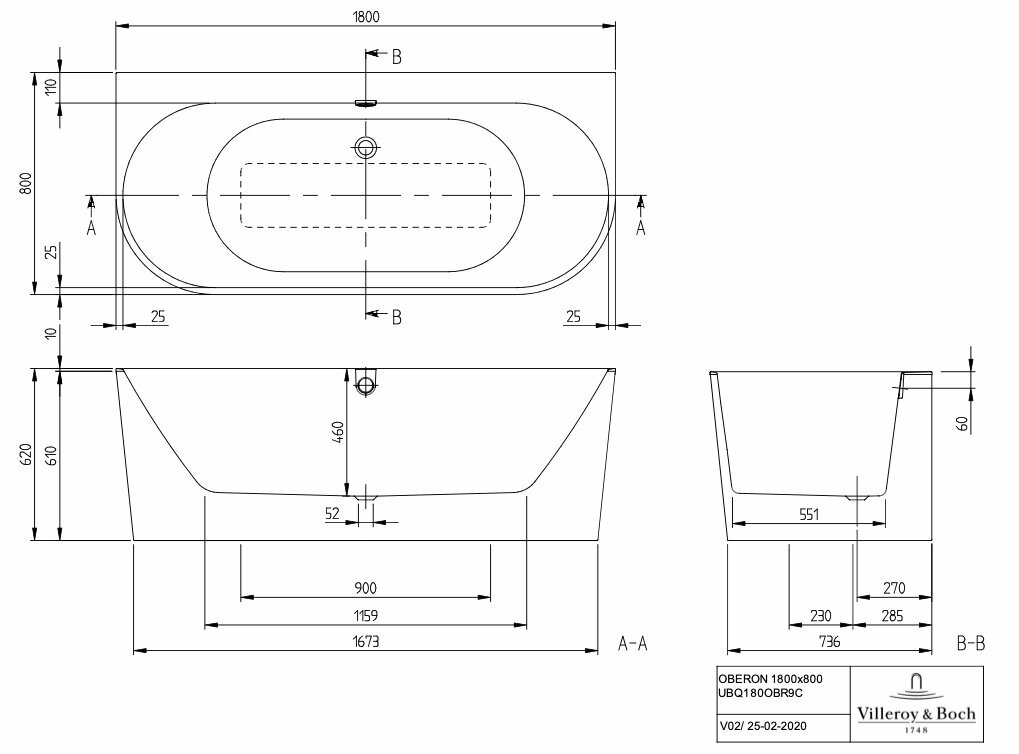 Квариловая ванна Villeroy&Boch Oberon 2.0 180x80 UBQ180OBR9CD00V-01 интересное: