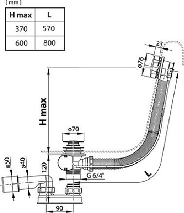 Сточный комплект для ванн удлиненный 800 хром (YOU, Formy)
