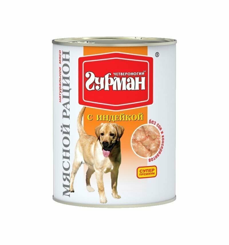 Четвероногий Гурман Мясной рацион консервированный корм премиум класса с индейкой для собак - 850 г х 6 шт