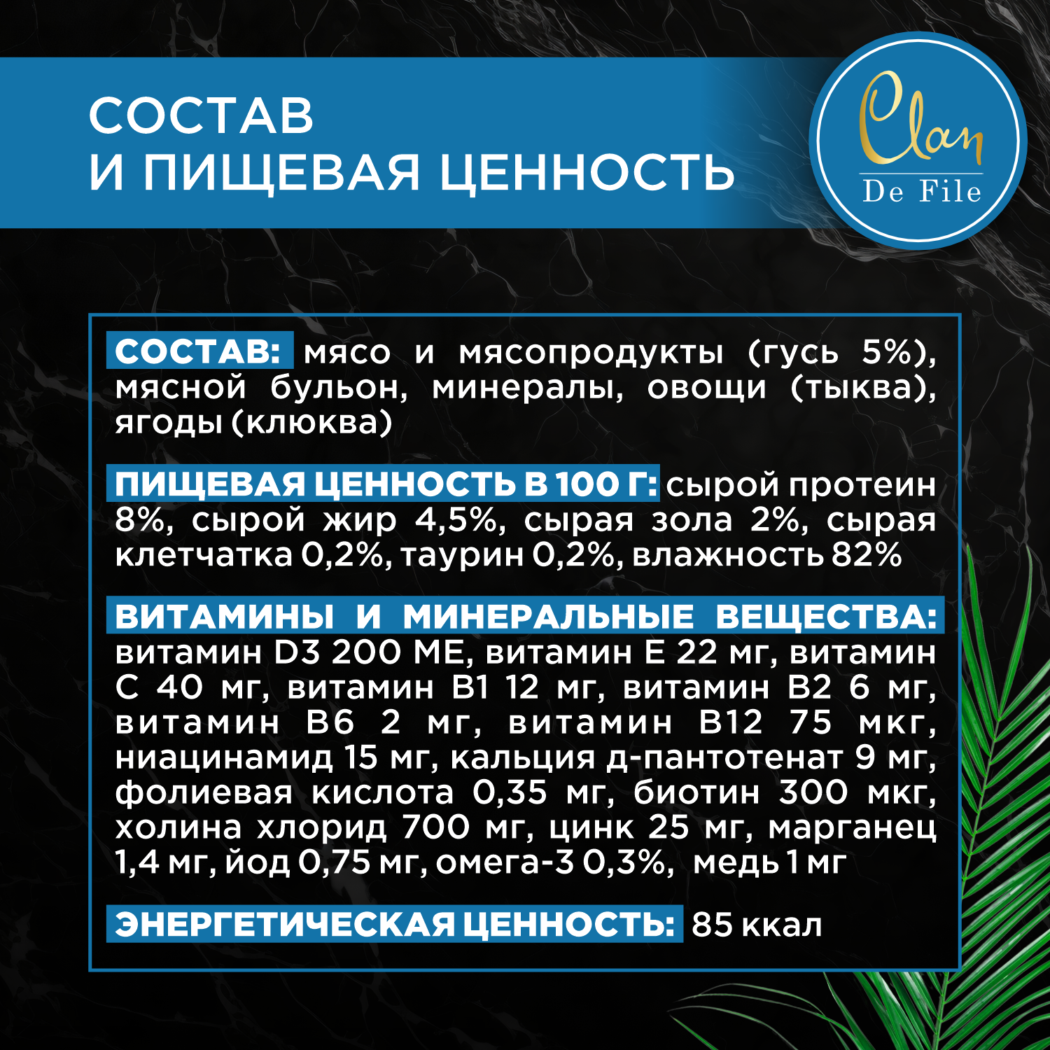 Купить Clan De File влажный корм для кошек, гусь с клюквой, кусочки в соусе (14шт в уп) 85 гр