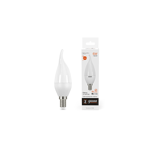 Лампа светодиодная Elementary 6Вт свеча на ветру 3000К тепл. бел. E14 420лм GAUSS 34116 (1 шт.)