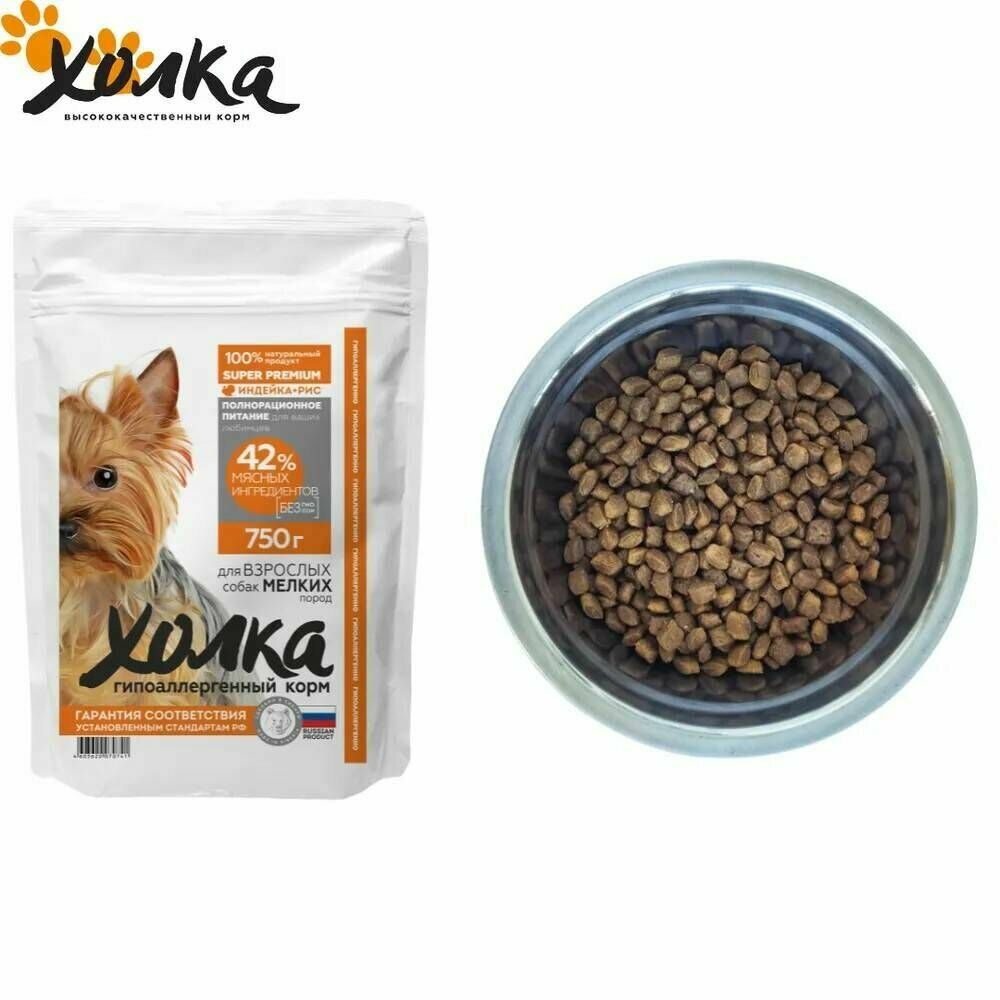 Корм холка гипоаллергенный премиум класса для взрослых собак мелких пород с индейкой и рисом, 750 гр.