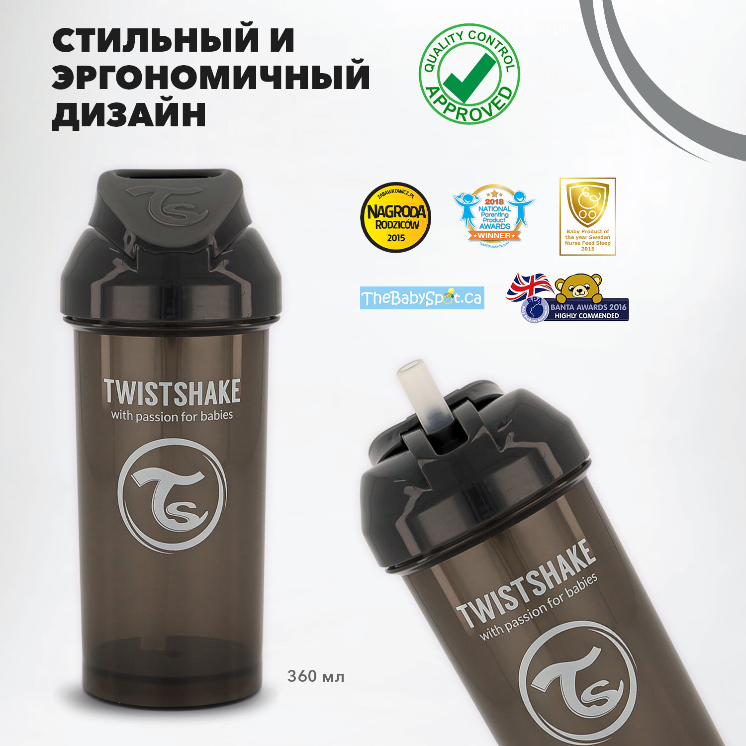 СохранитьПоильник с трубочкой Twistshake (Straw Cup) 360 мл. Чёрный (Black). Возраст 12+m. Арт. 78593 интересное: