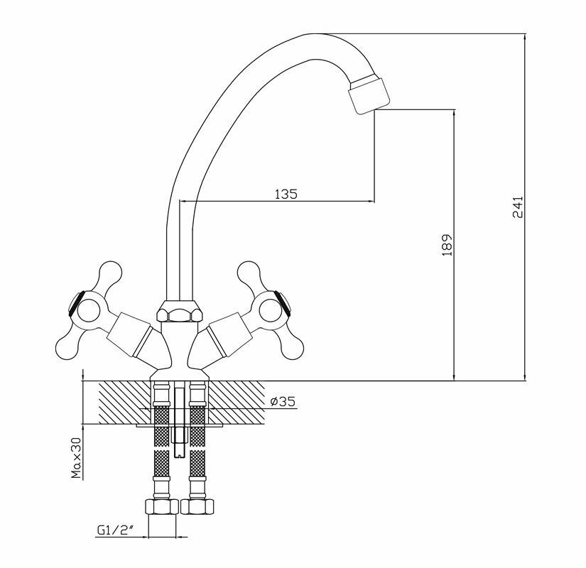 Смеситель для кухни двухвентильный VIKO V-1303, цвет хром