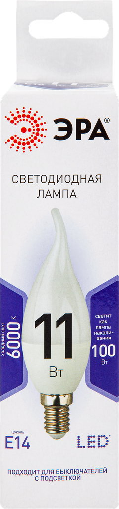 Купить ЭРА LED BXS-11W-860-E14 (диод, свеча на ветру, 11Вт, хол, E14)