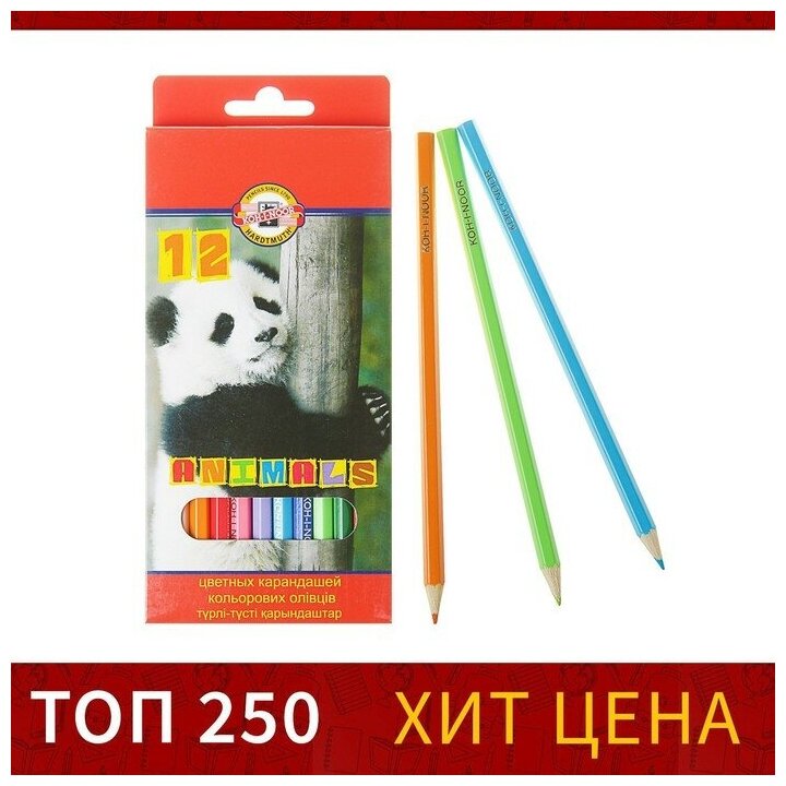 Цветные карандаши KOH-I-NOOR "Animals", 12 цветов, грифель 2,8 мм, заточенный (3552/12)