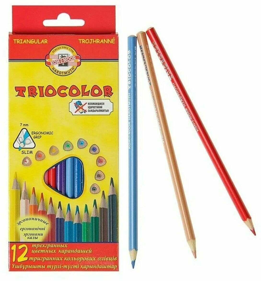 Карандаши цветные KOH-I-NOOR "Triocolor", 12 цветов, трехгранные, грифель 3,2 мм, европодвес, 3132012004KSRU В комплекте: 1шт.