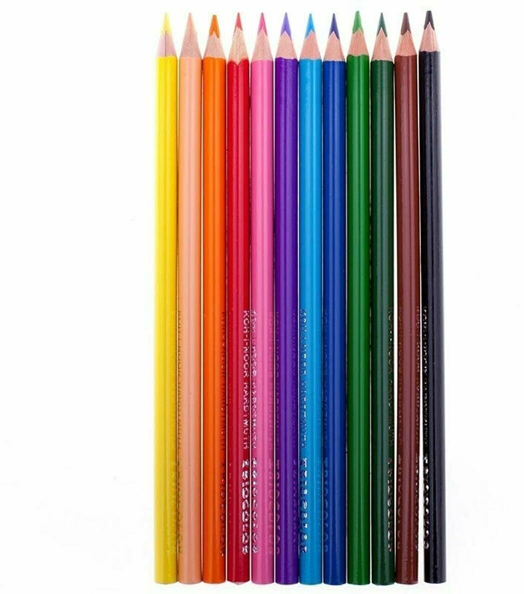 Карандаши цветные KOH-I-NOOR "Triocolor", 12 цветов, трехгранные, грифель 3,2 мм (3132012004KSRU)