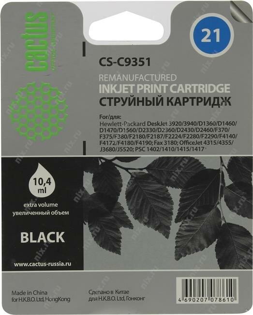 Расходный материал для печати Cactus CS-C9351 N21 черный (Картридж)