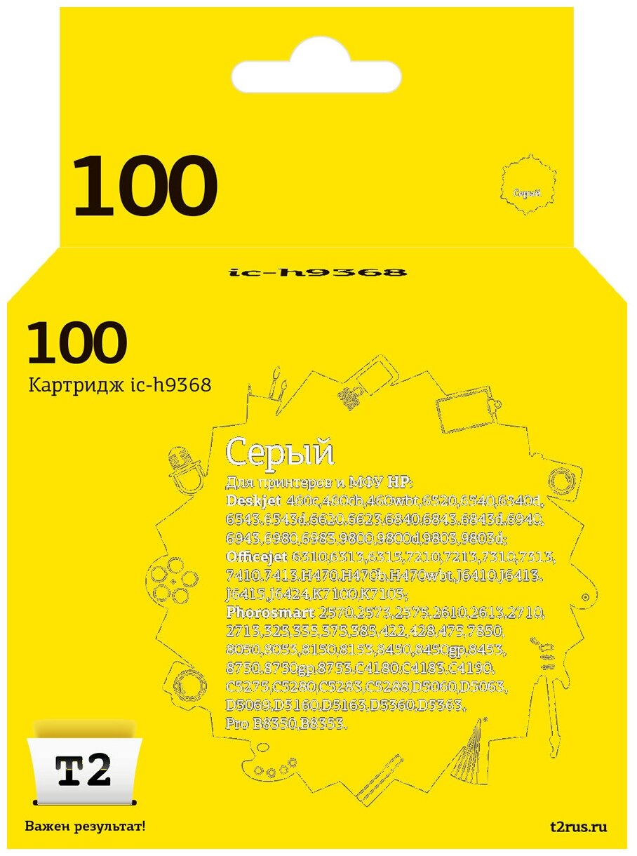 T2 Расходные материалы C9368HE Картридж IC-H9368 100 для HP Deskjet 460 6543 6843 9803 Photosmart 325 335 475 Pro B8353, серый,