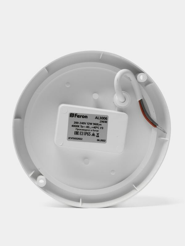 Светильник светодиод, Feron, AL3006, 12 Вт, 4000 К, 960 Лм, IP65, пылевлагостойкий, белый свет, плас