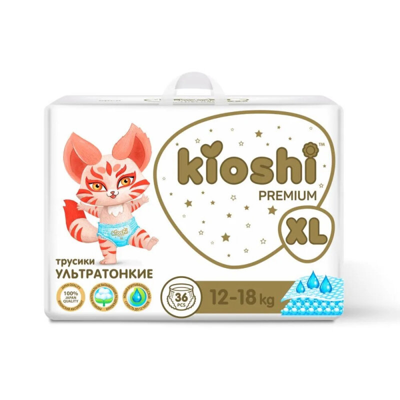 KIOSHI Подгузники-трусики KIOSHI PREMIUM , Ультратонкие, XL 12-18 кг, 36 шт