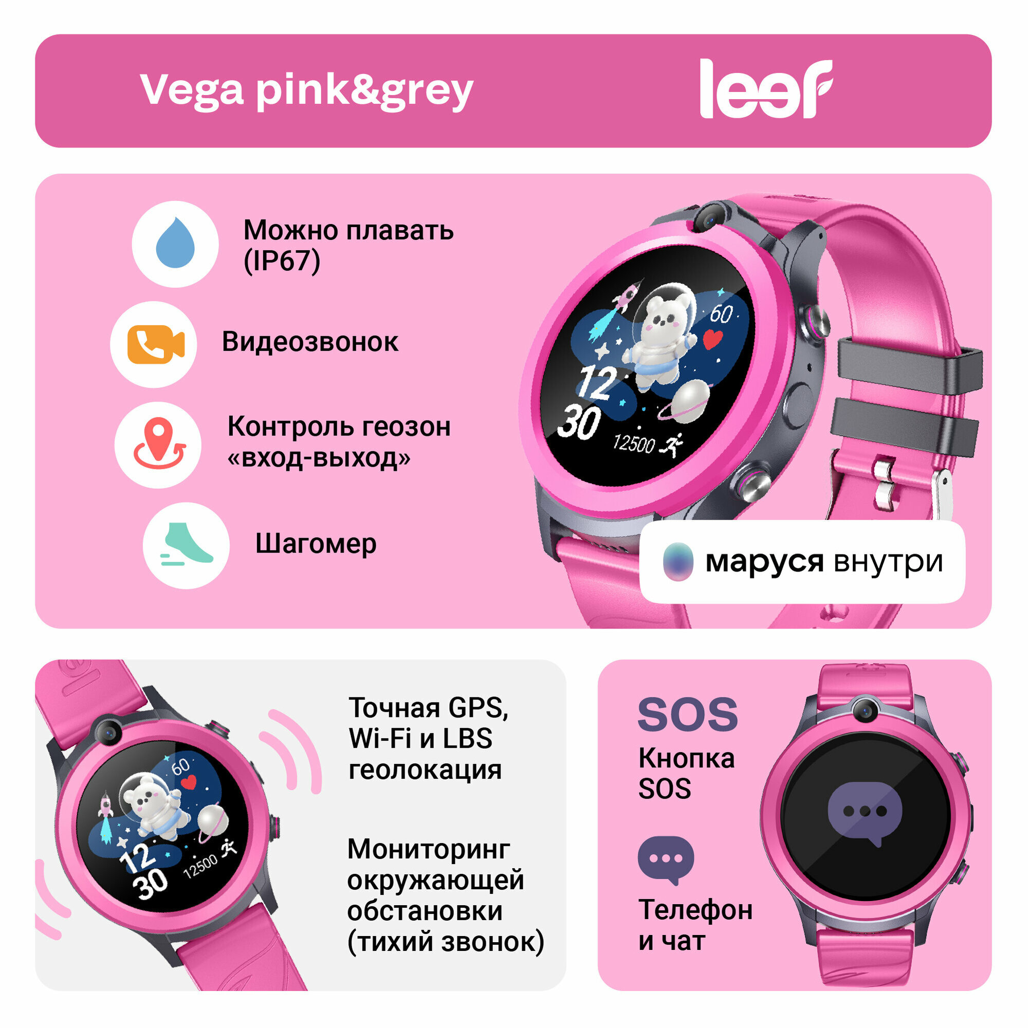 Leef Детские смарт-часы Leef Vega, 4G, GPS, геозоны, видеозвонок, SOS, IP67, 700мАч, розово/серые