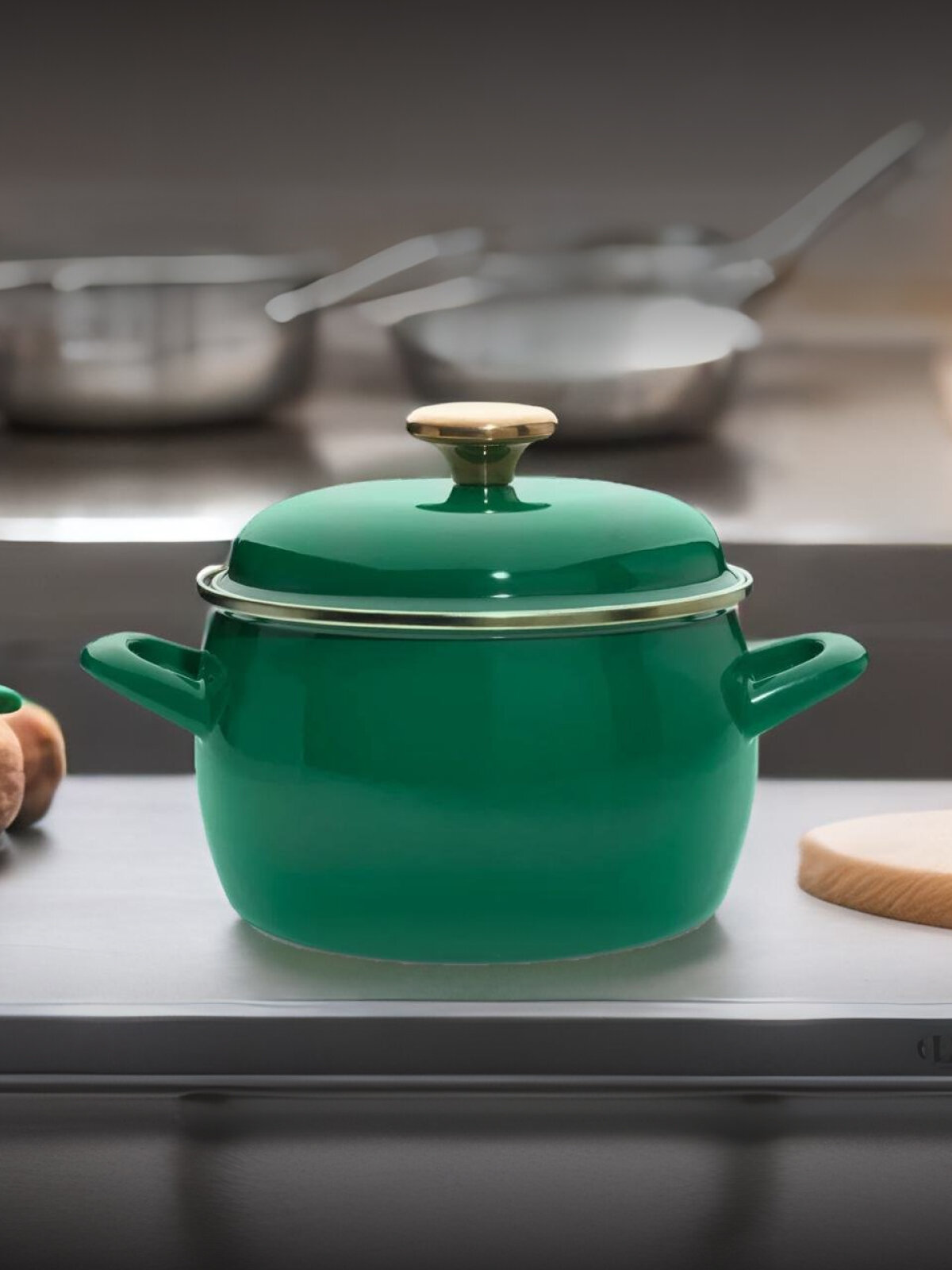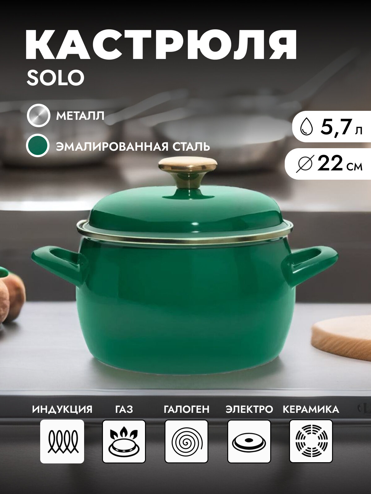 Кастрюля 5,7л 22см METROT SOLO Изумруд глубокая с металлической крышкой эмаль