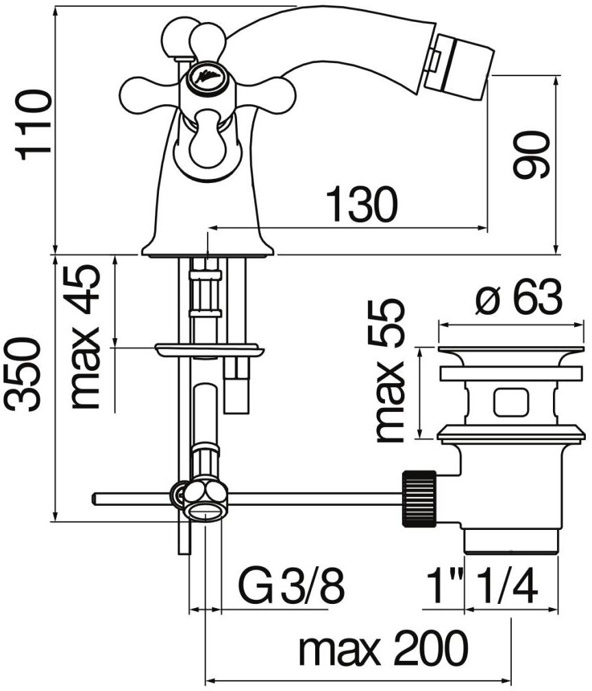 Смеситель Nobili Grazia GRC5119/6BR для биде с донным клапаном