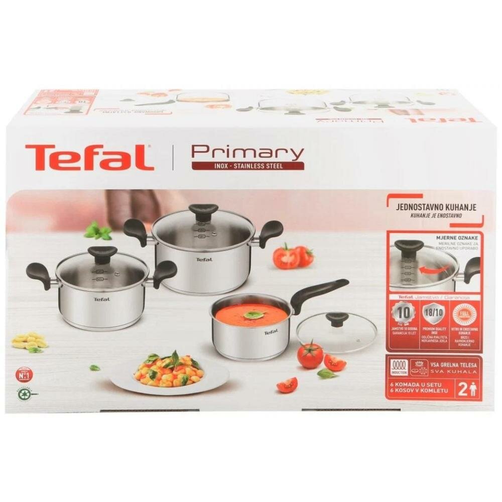Набор посуды Tefal Primary, 6 предметов (ковш 16 см, кастрюли 18, 20 см, крышки 16, 18, 20 см)