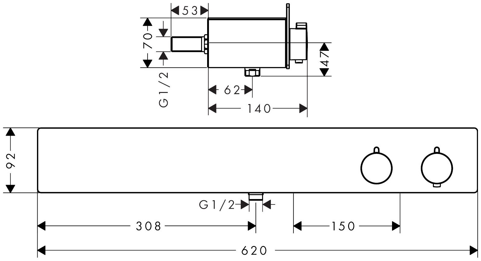 Купить Термостат hansgrohe ShowerTablet 600 для душа на 2 потребителя 13108000, хром