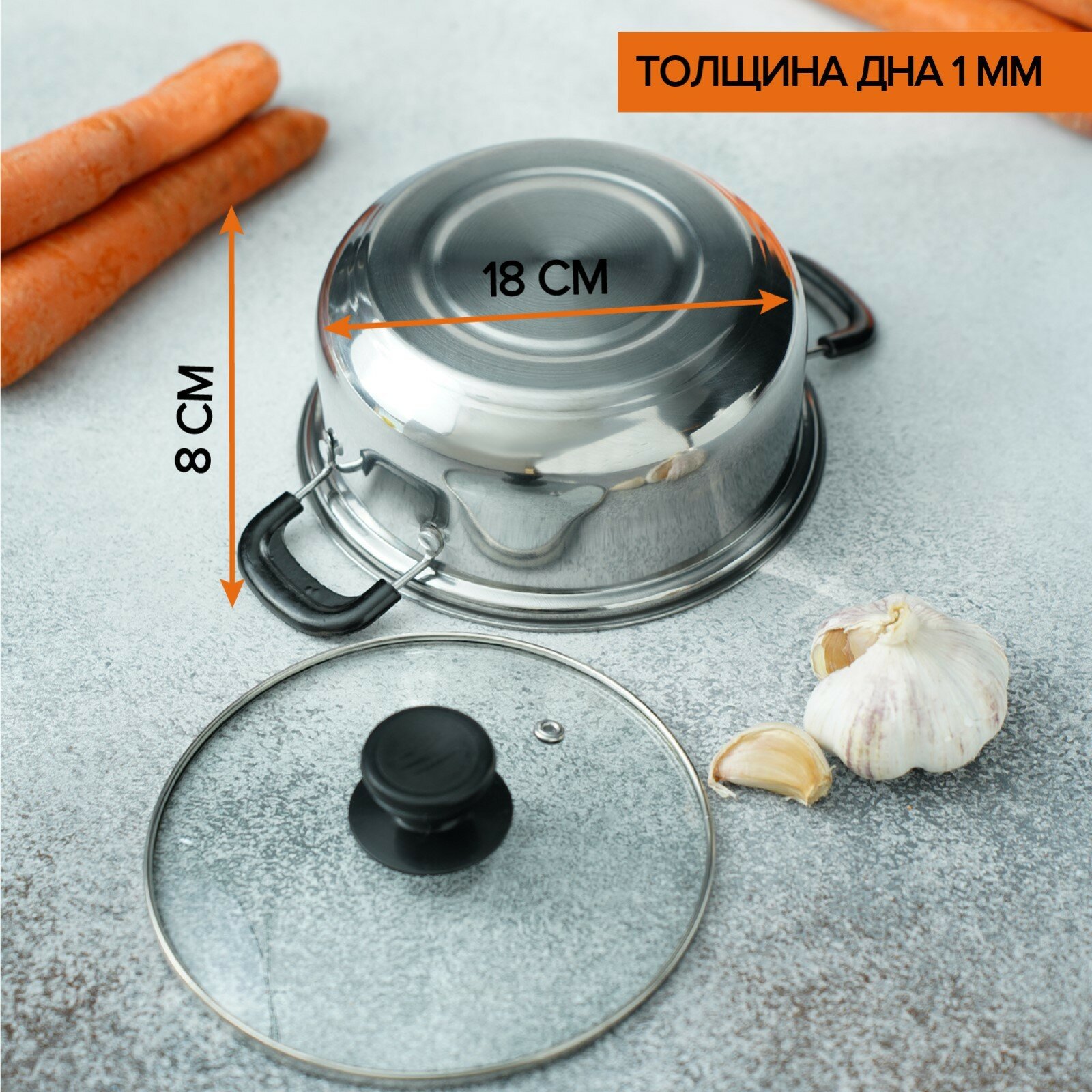 Кастрюля из нержавеющей стали Promo, 1,2 л, 18×8 см, с крышкой интересное: