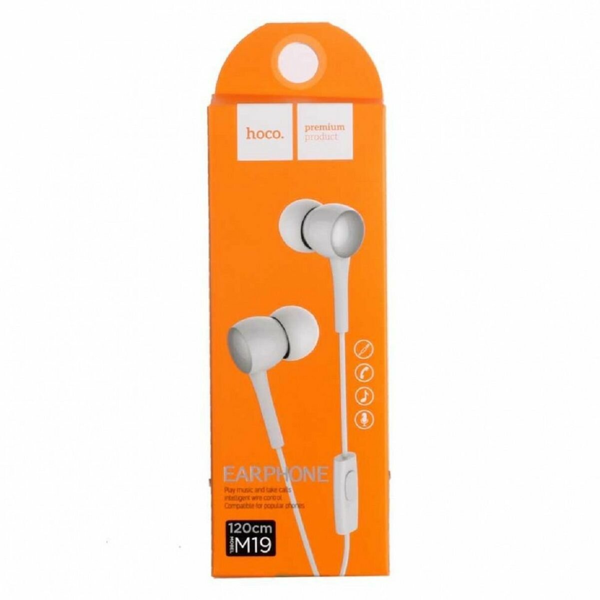 Проводные наушники с микрофоном, внутриканальные, Hoco M19 Drumbeat universal, 3.5 Jack, белые
