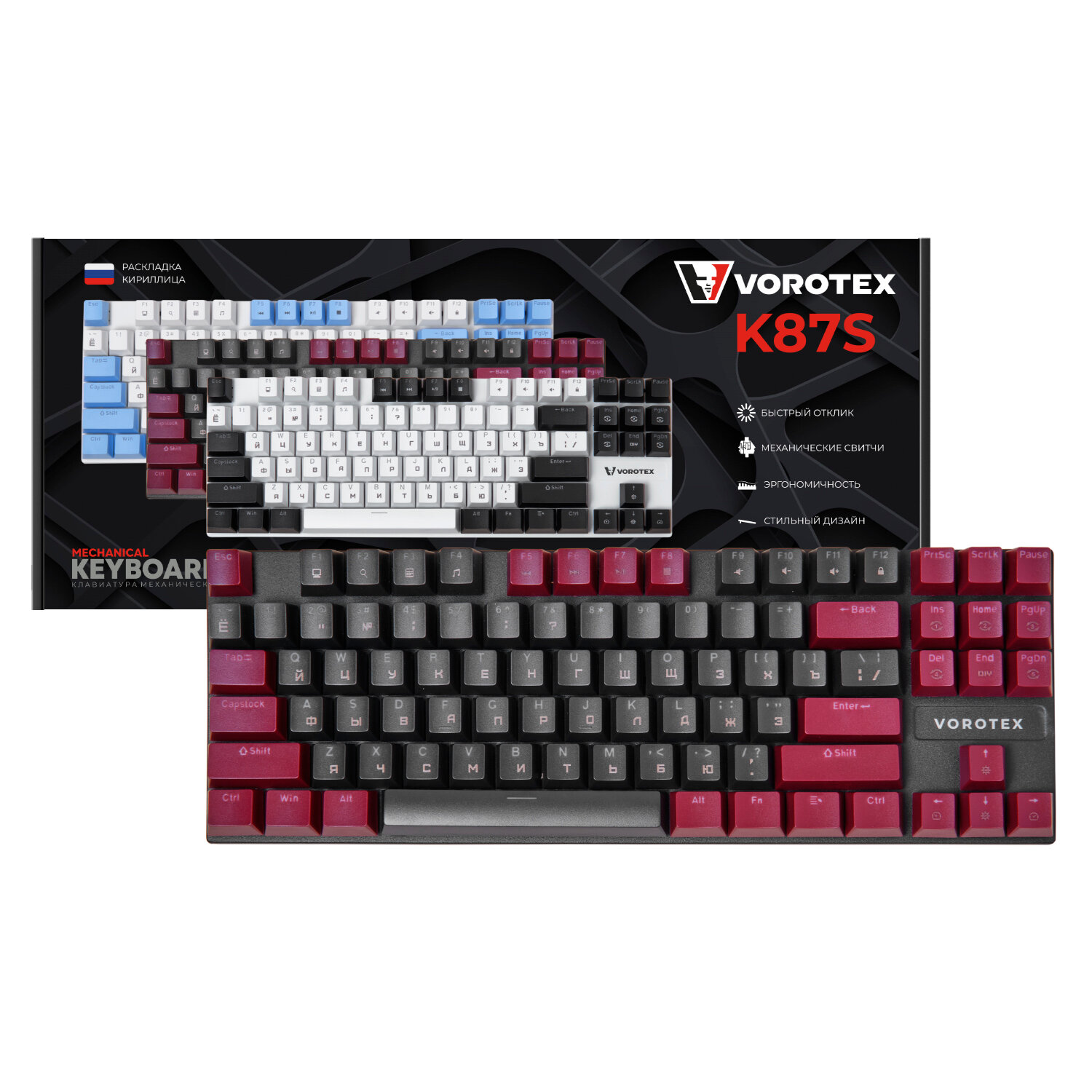 Клавиатура игровая проводная VOROTEX K87S Blue Switch, русская раскладка (Чёрный,бордовый)