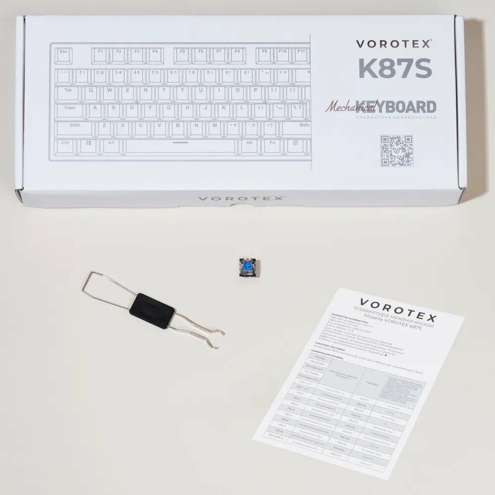 Игровая клавиатура VOROTEX K87S Blue Switch, серый/белый, кириллица+QWERTY