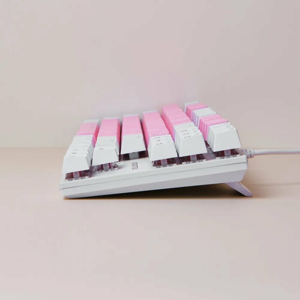 Игровая клавиатура VOROTEX K87S Blue Switch, белый/розовый, русская