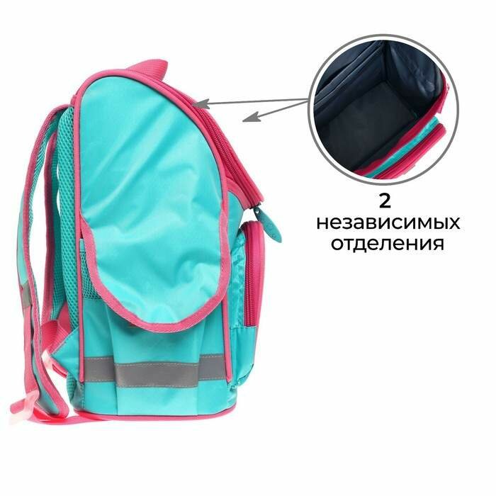 Ранец школьный Стандарт, 34 х 25 х 13 см, Calligrata М "Лисичка", мятный интересное: