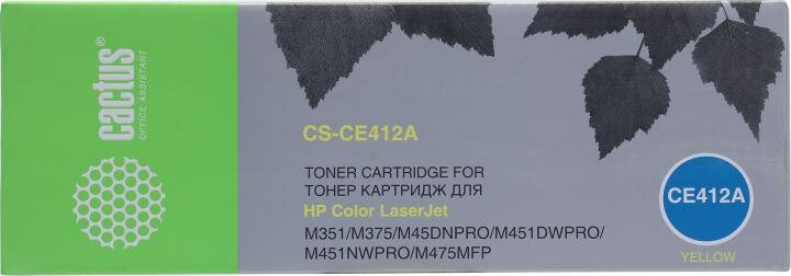 Купить Картридж лазерный CACTUS (CS-CE412A) для HP LaserJet Pro M351/M451, желтый, ресурс 2600 страниц
