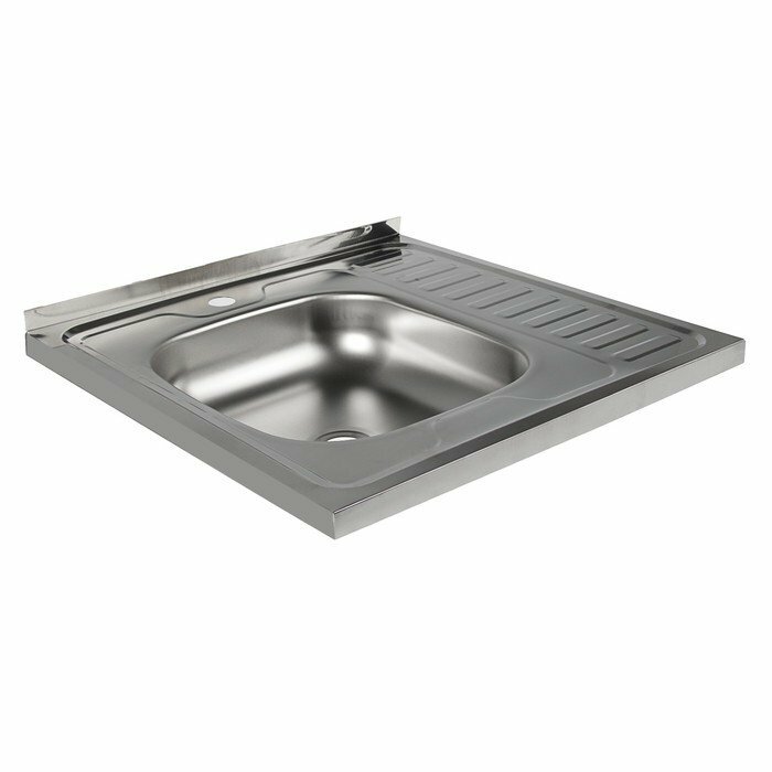 Мойка кухонная, накладная, без сифона, 60х60 см, правая, нержавеющая сталь 0.4 мм