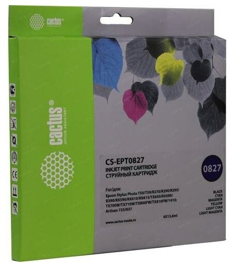 Картридж струйный Cactus CS-EPT0827 черный/голубой/пурпурный/желтый/светло-голубой/светло-пурпурный набор (82.8мл) для Epson Stylus Photo R270/290/RX590