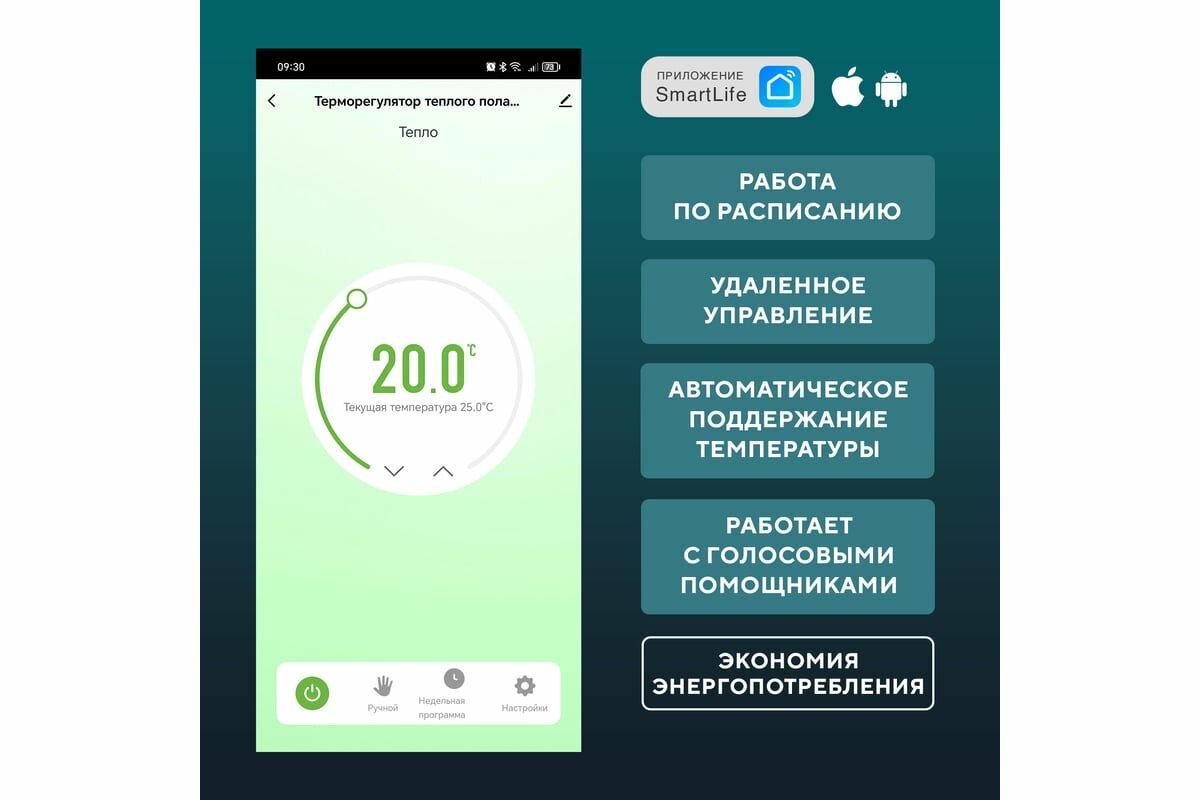 | Регулирование температуры теплого пола | есть |