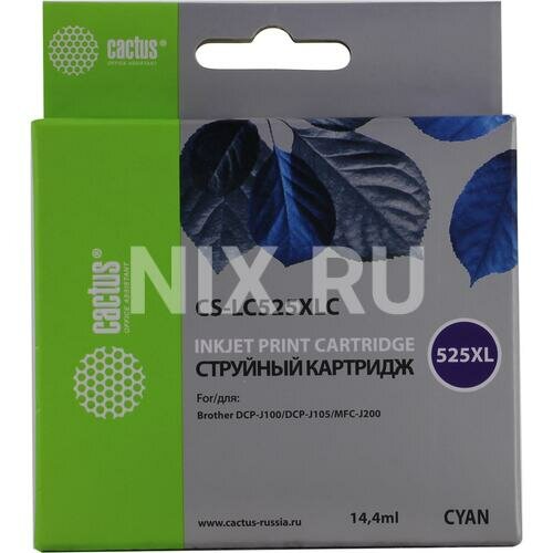 Картридж струйный Cactus CS-LC525XLC голубой (14.4мл) для Brother DCP-J100/J105/J200
