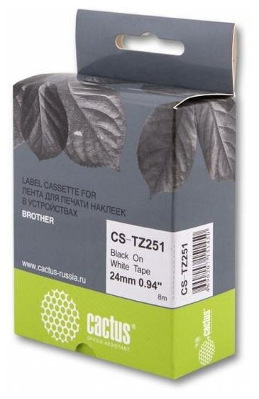 Картридж Cactus CS-TZ251, TZe-251, 24мм, черный шрифт, белый фон, 8м ( CS-TZ251