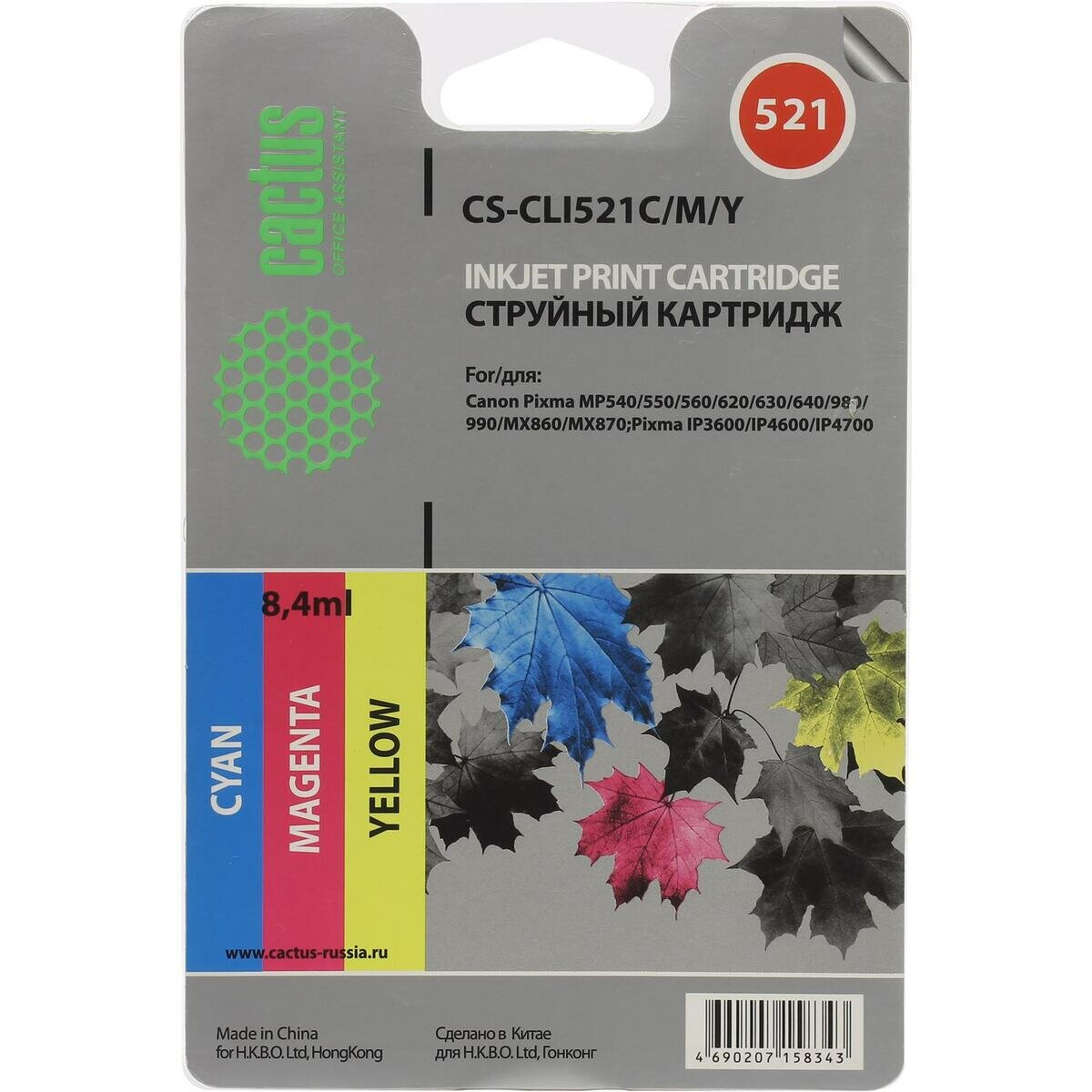 Набор картриджей Cactus CS-CLI521C/M/Y, для Canon, 3х8,2 мл, голубой/пурпурный/желтый