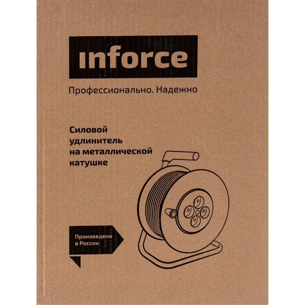 Купить Силовой удлинитель на металлической катушке Inforce К4-Е-50 50 м 4 розетки с з/к 44150