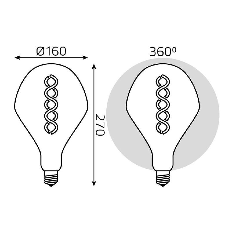 Светодиодная лампа GAUSS Led Vintage Filament Flexible SD160 8W E27 160*270mm Gray 2400K 1/6