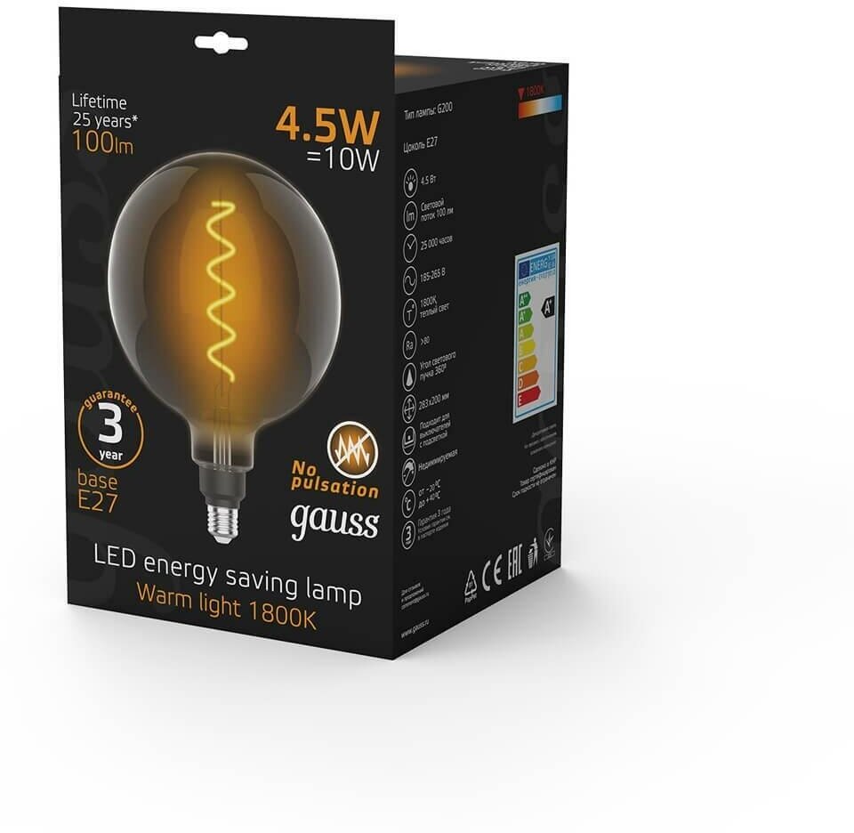 Лампа светодиодная Gauss Oversize E27 4.5Вт 1800K 154802005 интересное: