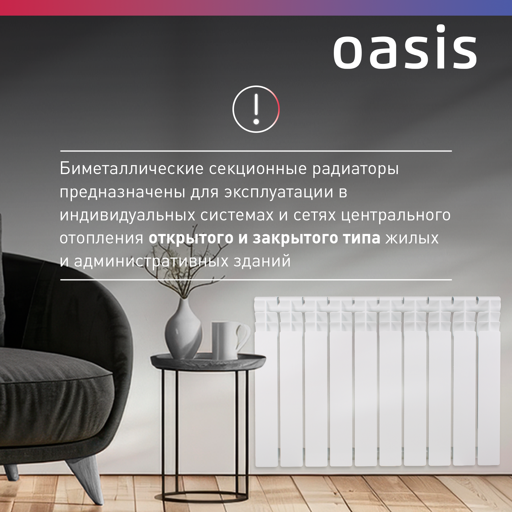 СохранитьРадиатор отопления биметаллический Oasis Pro, модель 500/80/10, 10 секций интересное: