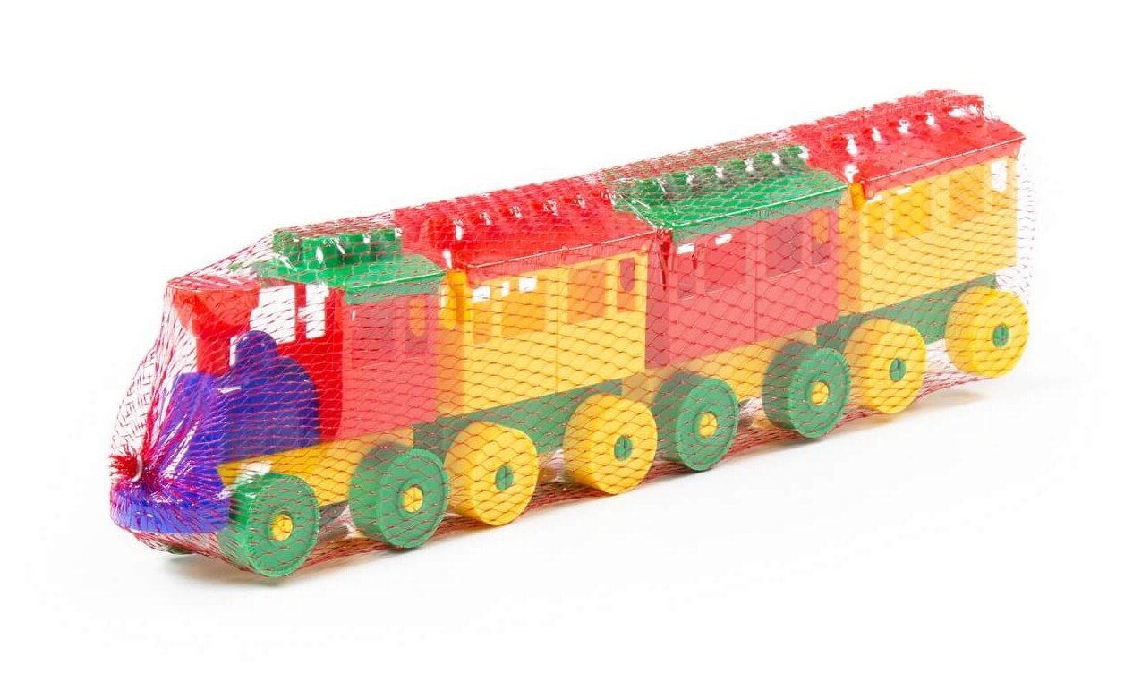 Конструктор 20 дет. Паровоз (три вагона, пластик, в сетке, от 3 лет) 2051, (Полесье)