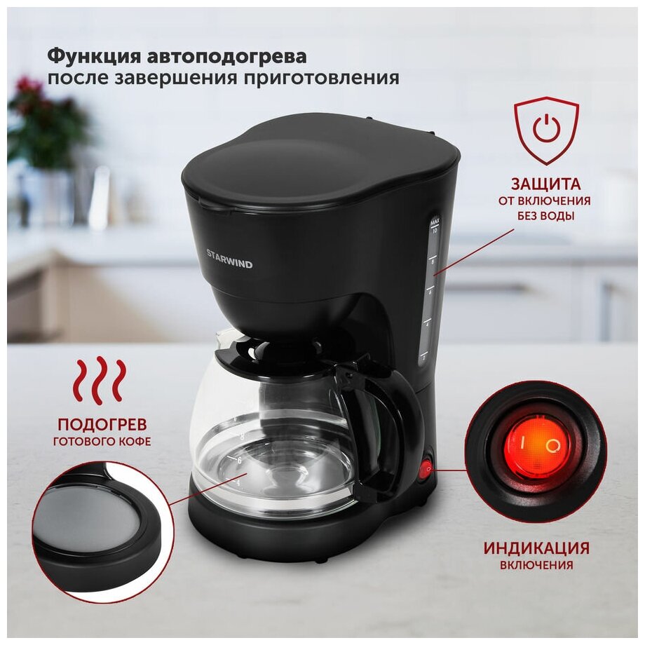Кофеварка капельная Starwind STD1212 черный интересное: