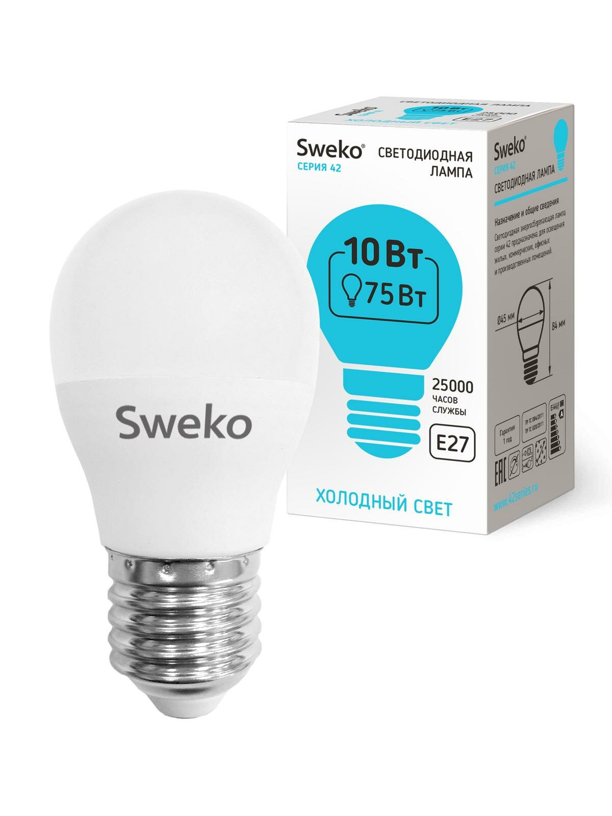 Купить Лампа светодиодная Sweko 38745, E27, G45, 10 Вт, 4000 К холодный свет