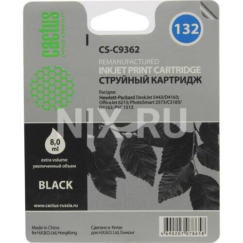 Картридж Cactus CS-C9362 №132 для HP DJ 5443/D4163/DJ 6215/PS 2573/C3183/D5163/PSC 1513, черный