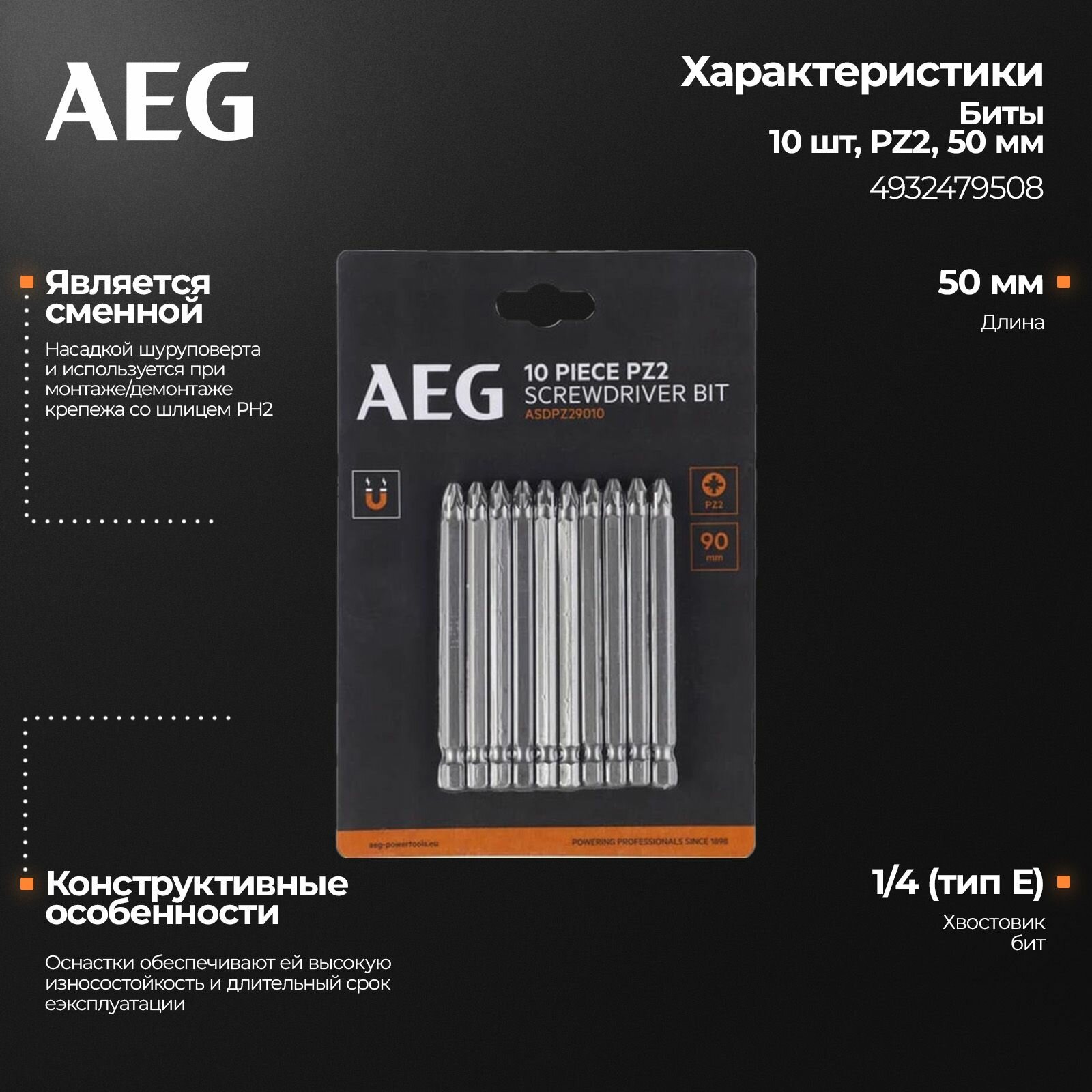 4932479508 AEG Биты 10шт. РZ2x50mm ASDPZ25010 4932479508